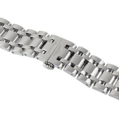 Ce bracelet de montre Longinesest fait de acier inoxydable et est attaché à la montre au moyen de Épingles à ressort. Le bracelet a une taille de 17 mm et se ferme au moyen d'un boucle papillon avec boutons poussoirs. Le bracelet n'a pas de support droit, ce qui signifie que ce bracelet convient uniquement aux montres énumérées ci-dessous.