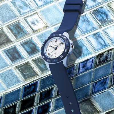 Cette montre Lorus a un boîtier Résine 29.5 mm en diamètre et est équipée d'un bracelet caoutchouc. Le boîtier contient un mouvement Seiko et la montre est dotée d'un cristal Acrylique..