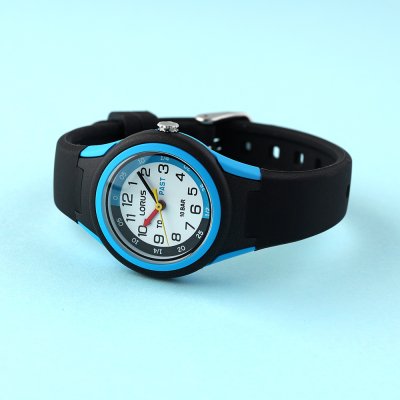 Cette montre Lorus a un boîtier Résine 29 mm en diamètre et est équipée d'un bracelet caoutchouc. Le boîtier contient un mouvement Seiko et la montre est dotée d'un cristal Acrylique..