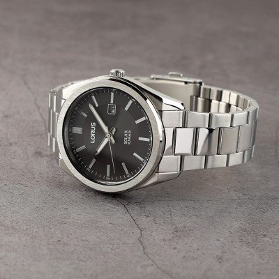 Cette montre Lorus a un boîtier Inox 42.5 mm en diamètre et est équipée d'un bracelet Inox. Le boîtier contient un mouvement Seiko et la montre est dotée d'un cristal Hardlex crystal..