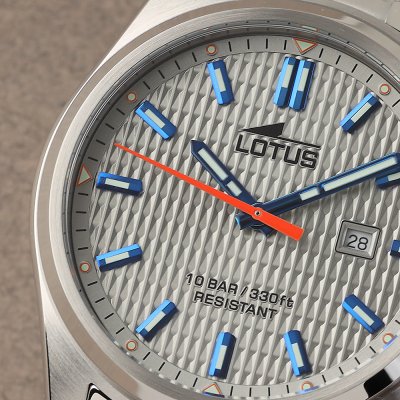 Cette montre Lotus a un boîtier Inox 42 mm en diamètre et est équipée d'un bracelet Inox. Le boîtier contient un mouvement Miyota et la montre est dotée d'un cristal Minéral..