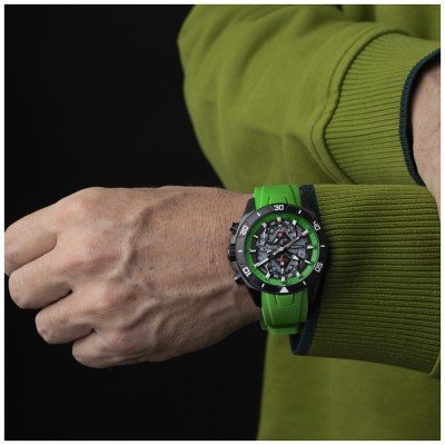 Cette montre Lotus a un boîtier Inox 44 mm en diamètre et est équipée d'un bracelet caoutchouc. Le boîtier contient un mouvement Miyota et la montre est dotée d'un cristal Minéral..