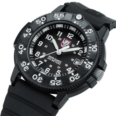 L'A.3001 est la montre originale Luminox Navy Seal commandée et développée en collaboration avec les Navy Seals américains. Étanche à 20 ATM, elle est dotée d'un boîtier renforcé en carbone, d'une lunette unidirectionnelle et des tubes luminescents brevetés de Luminox pour une excellente visibilité, même lors des plongées nocturnes.