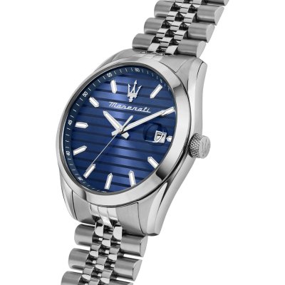 Cette montre Maserati a un boîtier Inox 43 mm en diamètre et est équipée d'un bracelet Inox. Le boîtier contient un mouvement Miyota et la montre est dotée d'un cristal Minéral..
