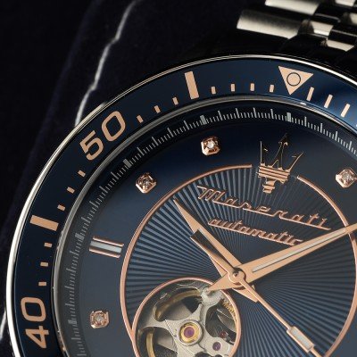 Cette montre Maserati a un boîtier Inox 44 mm en diamètre et est équipée d'un bracelet Inox. Le boîtier contient un mouvement Seiko Instruments Inc. et la montre est dotée d'un cristal Saphire..