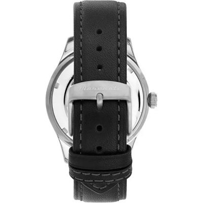 Cette montre Maserati a un boîtier Inox 42 mm en diamètre et est équipée d'un bracelet cuir. Le boîtier contient un mouvement Miyota et la montre est dotée d'un cristal Minéral enduit saphir..
