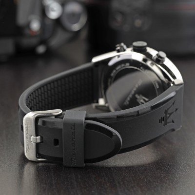 Cette montre Maserati a un boîtier Inox 45 mm en diamètre et est équipée d'un bracelet caoutchouc. Le boîtier contient un mouvement Miyota et la montre est dotée d'un cristal Minéral..