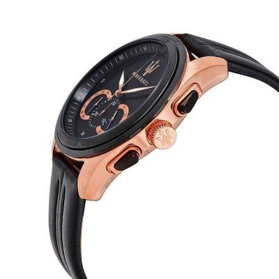 Cette montre Maserati a un boîtier Inox 45 mm en diamètre et est équipée d'un bracelet cuir. Le boîtier contient un mouvement Miyota et la montre est dotée d'un cristal Minéral..