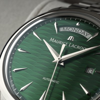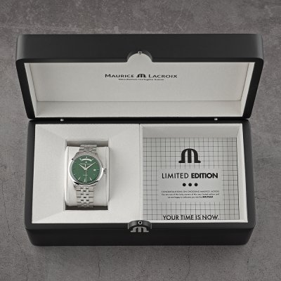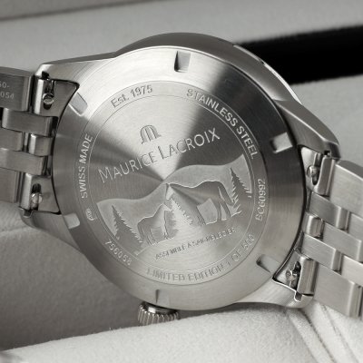Cette montre Maurice Lacroix a un boîtier Inox 40 mm en diamètre et est équipée d'un bracelet Inox. Le boîtier contient un mouvement Maurice Lacroix et la montre est dotée d'un cristal Saphire double antireflet..