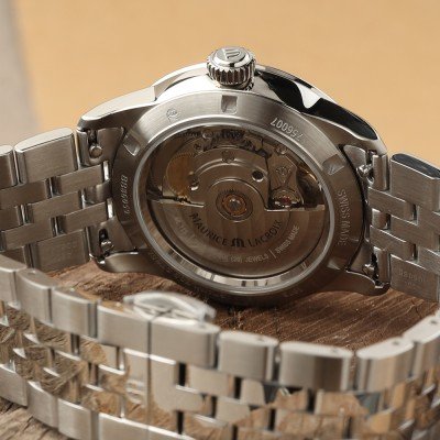 Cette montre Maurice Lacroix a un boîtier Inox 36 mm en diamètre et est équipée d'un bracelet Inox. Le boîtier contient un mouvement Sellita et la montre est dotée d'un cristal Saphire..