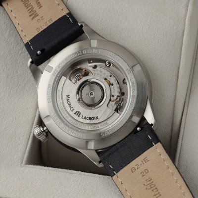 Cette montre Maurice Lacroix a un boîtier Inox 40 mm en diamètre et est équipée d'un bracelet cuir. Le boîtier contient un mouvement Sellita et la montre est dotée d'un cristal Saphire double antireflet..