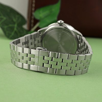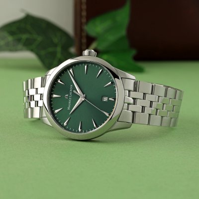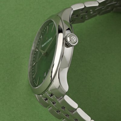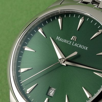 Cette montre Maurice Lacroix a un boîtier Inox 39 mm en diamètre et est équipée d'un bracelet Inox. Le boîtier contient un mouvement Ronda et la montre est dotée d'un cristal Saphire double antireflet..