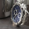 Ce modèle Aikon a un look plus robuste et sportif que les autres montres Aikon grâce aux trois aiguilles du chronographe au centre du cadran. Le sous-cadran supérieur mesure en unités de 10 secondes, ce qui rend les courtes périodes de temps très précises à mesurer. Malgré le boîtier plus grand, la montre a toujours le relief caractéristique de la lunette. Ce relief est appelé "griffe" et se reconnaît aux 6 carrés sur la lunette.