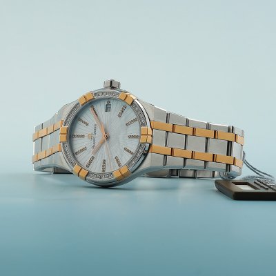 Cette montre Maurice Lacroix a un boîtier Inox 35 mm en diamètre et est équipée d'un bracelet Inox. Le boîtier contient un mouvement Ronda et la montre est dotée d'un cristal Saphire double antireflet..