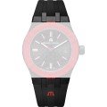 Ce bracelet de montre Maurice Lacroixest fait de caoutchouc et est attaché à la montre au moyen de Épingles à ressort à dégagement rapide. Le bracelet a une taille de 25 mm et se ferme au moyen d'un boucle. Le bracelet n'a pas de support droit, ce qui signifie que ce bracelet convient uniquement aux montres énumérées ci-dessous.