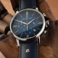Cette montre Maurice Lacroix a un boîtier Inox 40 mm en diamètre et est équipée d'un bracelet cuir. Le boîtier contient un mouvement Ronda et la montre est dotée d'un cristal Saphire..
