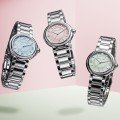 Les trois montres Fiaba - édition couleur pour femmes ont été développées en collaboration avec trois femmes extraordinaires : l'athlète britannique Hannah Lucy Williams, la longboardeuse Marina Correira et l'artiste Nadia. Leur mode de vie actif a inspiré Maurice Lacroix pour la création de ces montres distinctives aux teintes fraîches et vibrantes. Les montres de 32 mm sont à la fois élégantes et cool, avec des aiguilles des heures et des minutes en forme de feuille, une aiguille centrale des secondes légère, des index en forme de larme ou un chiffre arabe, sauf à 12 heures où le logo M de la marque indique l'heure de minuit. La zone centrale du cadran est encadrée d'un cercle de 46 diamants SI (0,1242 carats au total), ce qui ajoute une touche de glamour. Cette nouvelle Fiaba Trio est disponible dans un choix de trois teintes de cadran : Baby Blue, Blush Pink et Pistachio Green.