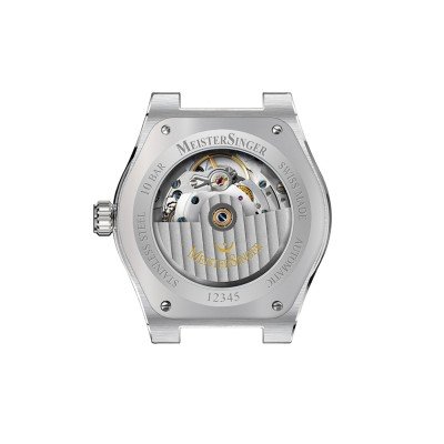 Cette montre Meistersinger a un boîtier Inox 40 mm en diamètre et est équipée d'un bracelet Inox. Le boîtier contient un mouvement Sellita et la montre est dotée d'un cristal Saphire..