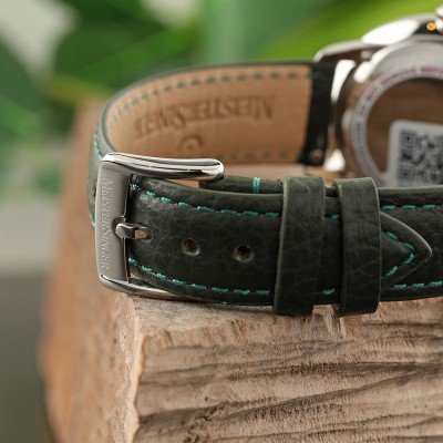Cette montre Meistersinger a un boîtier Inox 36 mm en diamètre et est équipée d'un bracelet cuir. Le boîtier contient un mouvement Sellita et la montre est dotée d'un cristal Saphire..