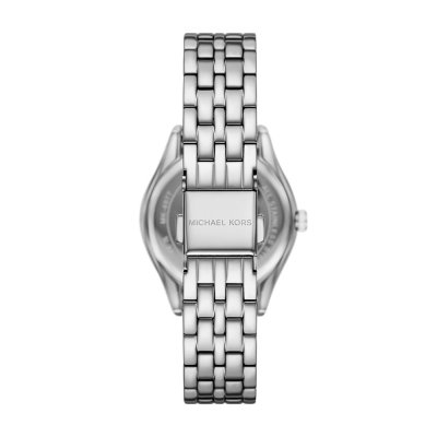 Cette montre Michael Kors a un boîtier Inox 33 mm en diamètre et est équipée d'un bracelet Inox. Le boîtier contient un mouvement Miyota et la montre est dotée d'un cristal Minéral..