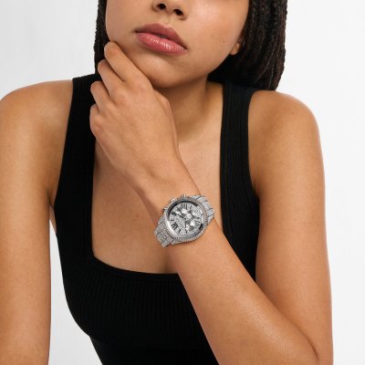 Cette montre Michael Kors a un boîtier Inox 42 mm en diamètre et est équipée d'un bracelet Inox. Le boîtier contient un mouvement Miyota et la montre est dotée d'un cristal Minéral..