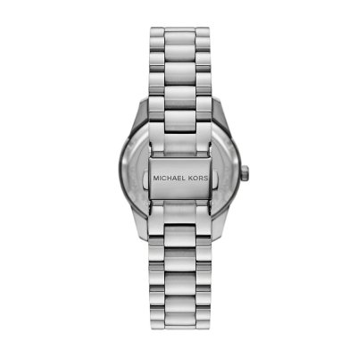 Cette montre Michael Kors a un boîtier Inox 34 mm en diamètre et est équipée d'un bracelet Inox. Le boîtier contient un mouvement Miyota et la montre est dotée d'un cristal Minéral..