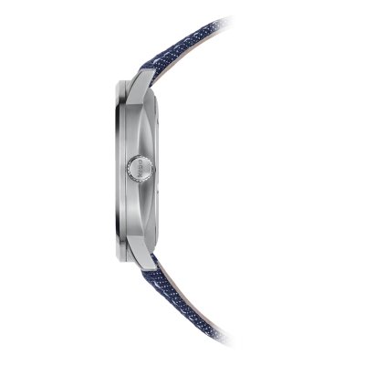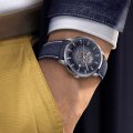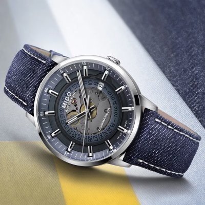 La série de montres Mido Commander existe depuis 1959. Au fil des ans, les montres ont été mises à jour et, bien sûr, équipées des dernières innovations techniques. La montre Commander Gradient possède un cadran spécial, en acrylique transparent, qui présente un dégradé de couleurs fumées, devenant de plus en plus opaque sur les bords. Le fonctionnement interne de la montre est donc visible à travers le cadran - bien qu'enveloppé d'un mystérieux effet de couleur, tandis que la date à 3 heures et les aiguilles en forme de bâton se détachent parfaitement. La montre est animée par un mouvement automatique de calibre 80 doté d'une réserve de marche étonnante de 80 heures ! Ce mouvement, dont le rotor est magnifiquement "guilloché", est visible non seulement de l'avant, mais aussi de l'arrière de la montre.