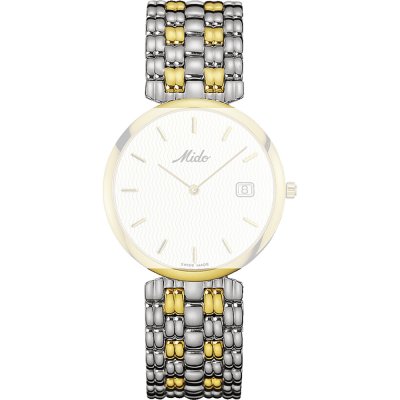 Ce bracelet de montre MIDOest fait de acier inoxydable et est attaché à la montre au moyen de goupilles en acier. Le bracelet a une taille de 18 mm et se ferme au moyen d'un boucle papillon avec boutons poussoirs. Le bracelet n'a pas de support droit, ce qui signifie que ce bracelet convient uniquement aux montres énumérées ci-dessous.