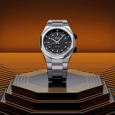 La montre Mido Multifort 8 Two Crowns est une reprise moderne de la ligne de montres classiques des années 1930 qui a permis à Mido de s'imposer comme un horloger-outil avec lequel il faut compter. Née en 1934, la Multifort se targuait d'être imperméable à l'eau, à la poussière et à la rouille, résistante aux chocs et antimagnétique. La Mido Multifort 8 Two Crowns réinvente l'héritage de la Multifort en mêlant TECHNOlogie et géoMÉTRIE, créant ainsi une nouvelle dimension : TECHNOMÉTRIE. Le design de la montre est résolument géométrique, avec des angles et des surfaces très marqués, un mélange magistral de brossage satiné et de polissage miroir, créant une apparence très distincte. Son cadran, qui présente une texture horizontale estampée en relief, renforce sa profondeur et son caractère. Une collerette interne fait partie intégrante du design et revisite l'une des fonctions de la Multifort. Elle est actionnée par la seconde couronne située à 2 heures. La montre est animée par le calibre 72 (basé sur le mouvement ETA A31.111), doté de la technologie Nivachron™ pour une précision et une durabilité accrues, et offrant une impressionnante réserve de marche de 72 heures. Cette dernière itération de la Multifort allie héritage et design innovant, donnant naissance à une montre équilibrée et portable, à la fois fonctionnelle et sportive.