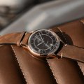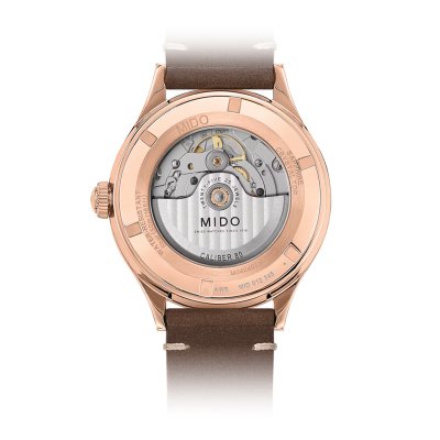 Cette montre MIDO a un boîtier Inox 40 mm en diamètre et est équipée d'un bracelet cuir. Le boîtier contient un mouvement ETA et la montre est dotée d'un cristal Saphire..