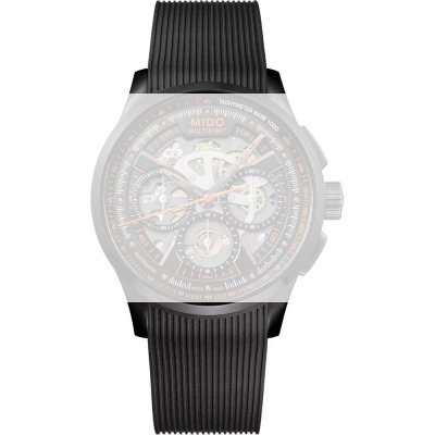 Ce bracelet de montre MIDOest fait de caoutchouc et est attaché à la montre au moyen de Épingles à ressort à dégagement rapide. Le bracelet a une taille de 22 mm et se ferme au moyen d'un boucle papillon. Le bracelet est doté d'une monture droite, ce qui signifie qu'il convient à toutes les montres de la MIDO dotées d'une monture droite..