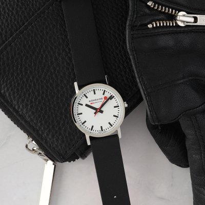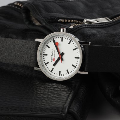 Cette montre Mondaine a un boîtier Inox 30 mm en diamètre et est équipée d'un bracelet cuir. Le boîtier contient un mouvement Ronda et la montre est dotée d'un cristal Minéral..