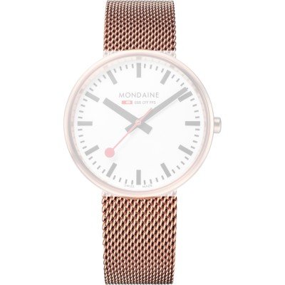 Ce bracelet de montre Mondaineest fait de acier inoxydable et est attaché à la montre au moyen de Épingles à ressort. Le bracelet a une taille de 18 mm et se ferme au moyen d'un fermoir milanais. Le bracelet est doté d'une monture droite, ce qui signifie qu'il convient à toutes les montres de la Mondaine dotées d'une monture droite..