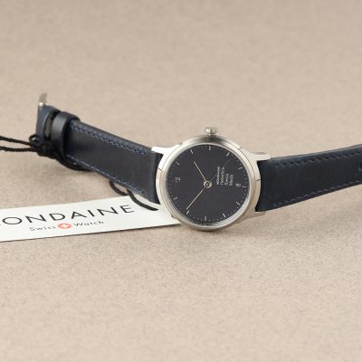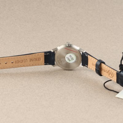 Cette montre Mondaine a un boîtier Inox 26 mm en diamètre et est équipée d'un bracelet cuir. Le boîtier contient un mouvement Ronda et la montre est dotée d'un cristal Saphire..