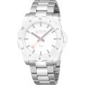Ce bracelet de montre Mondaineest fait de métal et est attaché à la montre au moyen de Épingles à ressort. Le bracelet a une taille de 22 mm et se ferme au moyen d'un boucle déployante avec boutons poussoirs. Le bracelet n'a pas de support droit, ce qui signifie que ce bracelet convient uniquement aux montres énumérées ci-dessous.