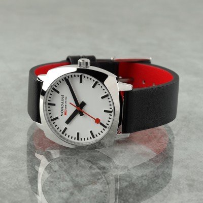 Cette montre Mondaine a un boîtier Inox 31 mm en diamètre et est équipée d'un bracelet Cuir végétalien. Le boîtier contient un mouvement Ronda et la montre est dotée d'un cristal Saphire..