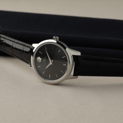 Cette montre Movado a un boîtier Inox 30 mm en diamètre et est équipée d'un bracelet cuir. Le boîtier contient un mouvement ETA et la montre est dotée d'un cristal Saphire..
