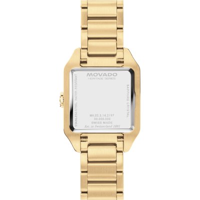 Cette montre Movado a un boîtier Inox 25 mm en diamètre et est équipée d'un bracelet Inox. Le boîtier contient un mouvement Ronda et la montre est dotée d'un cristal Saphire..