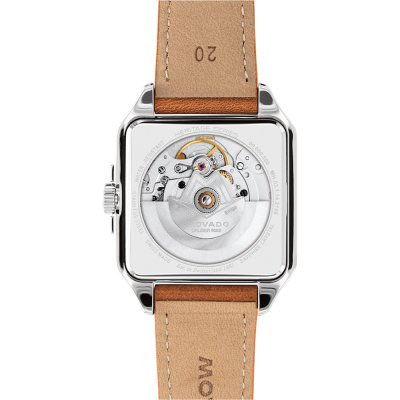 La collection Movado Heritage s'inspire de la riche histoire de la marque et remet au goût du jour les montres d'époque. L'élégance géométrique de l'Art déco se reflète dans les montres "Heritage 1917". Célébrant et réinventant les premières montres Movado carrées de 1917, cette montre possède un boîtier de forme aux lignes clairement définies et à l'allure architecturale. Les mises à jour contemporaines de l'original sont un bracelet unilink nouvellement conçu ou un riche bracelet en cuir tanné italien d'inspiration vintage, ainsi qu'un cadran ombré soleil, avec de subtiles variations de tons, faisant écho à une ligne d'horizon Deco. Le mouvement automatique suisse Sellita SW200, doté d'un rotor au design Deco personnalisé, présente des aiguilles douces et dynamiques et est visible à travers un fond de boîtier en verre saphir.