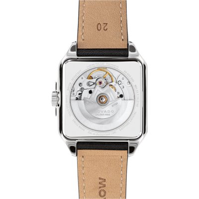 La collection Movado Heritage s'inspire de la riche histoire de la marque et remet au goût du jour les montres d'époque. L'élégance géométrique de l'Art déco se reflète dans les montres "Heritage 1917". Célébrant et réinventant les premières montres Movado carrées de 1917, cette montre possède un boîtier de forme aux lignes clairement définies et à l'allure architecturale. Les mises à jour contemporaines de l'original sont un bracelet unilink nouvellement conçu ou un riche bracelet en cuir tanné italien d'inspiration vintage, ainsi qu'un cadran ombré soleil, avec de subtiles variations de tons, faisant écho à une ligne d'horizon Deco. Le mouvement automatique suisse Sellita SW200, doté d'un rotor au design Deco personnalisé, présente des aiguilles douces et dynamiques et est visible à travers un fond de boîtier en verre saphir.