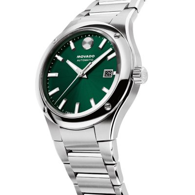 Cette montre Movado a un boîtier Inox 40 mm en diamètre et est équipée d'un bracelet Inox. Le boîtier contient un mouvement Sellita et la montre est dotée d'un cristal Saphire..