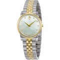 Cette montre Movado a un boîtier Inox 28 mm en diamètre et est équipée d'un bracelet Inox. Le boîtier contient un mouvement ETA et la montre est dotée d'un cristal Saphire..