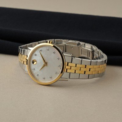Cette montre Movado a un boîtier Inox 28 mm en diamètre et est équipée d'un bracelet Inox. Le boîtier contient un mouvement ETA et la montre est dotée d'un cristal Saphire..