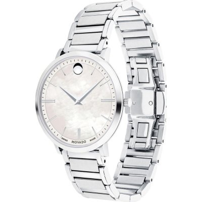 Cette montre Movado a un boîtier Inox 35 mm en diamètre et est équipée d'un bracelet Inox. Le boîtier contient un mouvement ETA et la montre est dotée d'un cristal Saphire..
