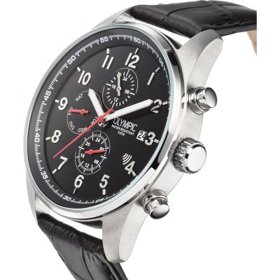 Cette montre Olympic a un boîtier Inox 40 mm en diamètre et est équipée d'un bracelet cuir. Le boîtier contient un mouvement Seiko Instruments Inc. et la montre est dotée d'un cristal Minéral..