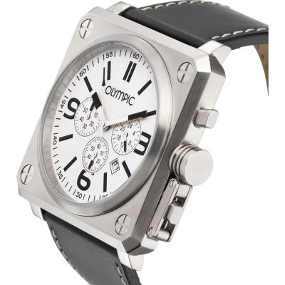 Cette montre Olympic a un boîtier Inox 46 mm en diamètre et est équipée d'un bracelet cuir. Le boîtier contient un mouvement Miyota et la montre est dotée d'un cristal Minéral..