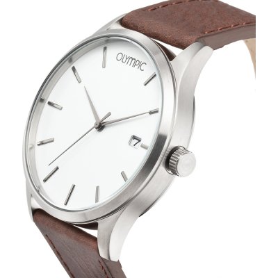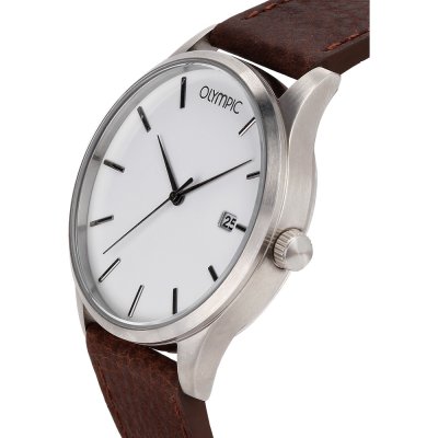 Cette montre Olympic a un boîtier Inox 45 mm en diamètre et est équipée d'un bracelet cuir. Le boîtier contient un mouvement Miyota et la montre est dotée d'un cristal Minéral..