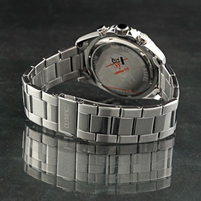 Cette montre Olympic a un boîtier Inox 43 mm en diamètre et est équipée d'un bracelet Inox. Le boîtier contient un mouvement Miyota et la montre est dotée d'un cristal Minéral..