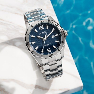 Cette montre Olympic a un boîtier Inox 44 mm en diamètre et est équipée d'un bracelet Inox. Le boîtier contient un mouvement Miyota et la montre est dotée d'un cristal Minéral..