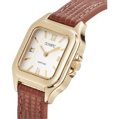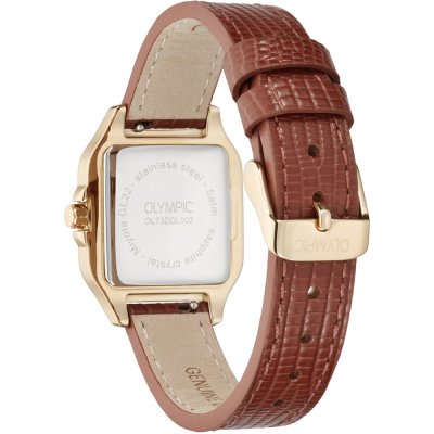 Cette montre Olympic a un boîtier Inox 26 mm en diamètre et est équipée d'un bracelet cuir. Le boîtier contient un mouvement Miyota et la montre est dotée d'un cristal Saphire..